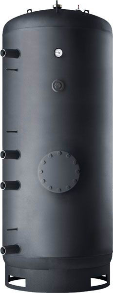 Anwendung • Der Trinkwarmwasser-Speicher eignet sich für den Wärmepumpen-Betrieb mit großer Leistung. Das Gerät wird je nach Fassungsvermögen und Fläche der Wärmeübertrager im Zwei- oder Mehrfamilienhaus bzw. im gewerblich genutzten Gebäude eingesetzt. • Wahlweise lässt sich solarthermische Unterstützung einbinden. Komfortmerkmale • Der emaillierte Stahlbehälter ist mit einer Magnesium-Signalanode für zusätzlichen Korrosionsschutz ausgestattet. • Zwei innenliegende Doppelrohr-Wärmeübertrager sind integriert: der untere für das Solarthermie-System, der obere für die Wärmepumpe. Bei Wärmepumpen größerer Leistung können beide Wärmeübertrager in Reihe geschaltet werden. • Die Revisionsflansche sind mit Blindflanschen abgedeckt. Bei Bedarf lassen sich mit weiteren Wärmeübertragern oder Elektro-Heizflanschen bestücken. Effizienz • Geringe Warmhalteverluste, wenn die Wärmedämmung als Zubehör genutzt wird. • Dank der abgestimmten Ein- und Ausströmtechnik ist eine gute Temperaturschichtung sichergestellt.