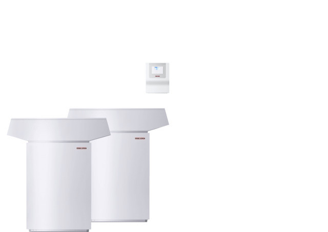 Anwendung • Die Kaskadenlösung aus zwei leistungsgeregelten Luft-Wasser-Wärmepumpen in Monoblock-Bauweise eignet sich dank der ganzjährig bedarfsgerecht hohen Vorlauftemperaturen für größere Leistungsanforderungen. • Der Wärmepumpen-Manager mit intelligenter Kaskadensteuerung ist im Set enthalten. Um den effizienten Betrieb sicherzustellen und die Wärmepumpen gleichmäßig zu belasten, wird nicht nur Wärme leistungsgerecht bereitgestellt, sondern auch die Laufzeiten der Geräte werden kontinuierlich abgeglichen.