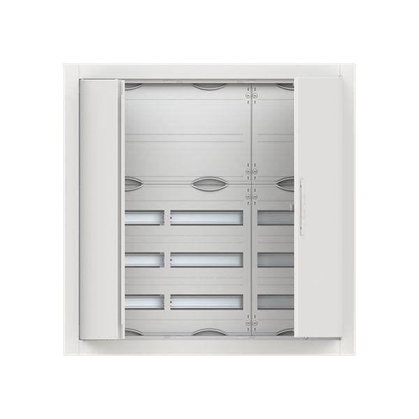 So ermöglicht ein Reihenabstand von 125 mm in Kombination mit einem separater Klemmenraum für Reihenklemmen eine einfache und effiziente Installation der Reiheneinbaugeräte. Durch die QMS-Rasttechnik kann der Ausbau mit Verteilerfelder und Kombi-Sets individuell nach Kundenwunsch rea-lisiert werden. Die Gehäuse werden mit Blendrahmen und Tür ausgeliefert. Das dezente Design vom Blendrahmen ermöglicht nur einen Wandauftrag von nur 15 mm, der integrierte Putzausgleich passt den Kleinverteiler zudem an jede Umgebung an. Durch die geringe Einbautiefe von 110 mm können die Kleinverteiler mit einfacher Beplankung leicht in Hohlwände montiert werden. Ein spezielles Hohl-wandset vereinfacht und beschleunigt den Einbau in Hohlwände deutlich und macht jeden Kleinvertei-ler zu einem Hohlwandverteiler. Die Gehäuse verfügen oben, unten, seitlich sowie rückwärtig über Vor-prägungen zur Leitungseinführung. Der serienmäßige herausnehmbare Leitungseinführungsschieber vereinfacht und beschleunigt die Verdrahtung deutlich.
