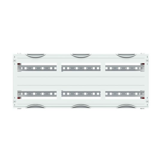 Innenausbau Modul, CombiLine, Bausatz unmontiert, für DIN Reiheneinbaugeräte, Rasteinheit 2 RE = 300 mm, Feldbreite 3 = 750 mm, 72 Platzeinheiten, Reihenabstand: 150, Ausbau mit Hutprofilschiene 35 x 15 mm mit Lochung für Drahthalter, Hutschiene ab 3-feldbreit mit zusätzlicher Stabilisierungsschiene, für Einbaugeräte nach DIN 43880, Abdeckungen aus Kunststoff, 90 Grad Druck-Drehverschluss, RAL 7035, Ausführung der Abdeckung: mit Ausschnitt, einsetzbar ab einer Schranktiefe von 120 mm, EDF oder WR Montagegerüst muss separat bestellt werden