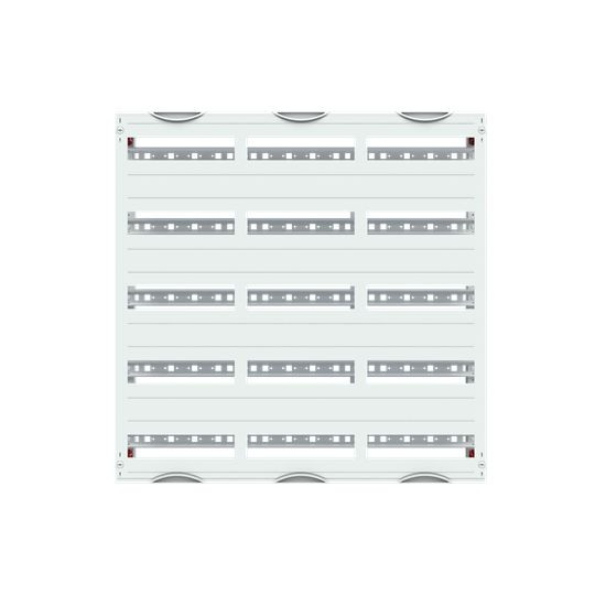 Innenausbau Modul, CombiLine, Bausatz unmontiert, für DIN Reiheneinbaugeräte, Rasteinheit 5 RE = 750 mm, Feldbreite 3 = 750 mm, 180 Platzeinheiten, Reihenabstand: 150, Ausbau mit Hutprofilschiene 35 x 15 mm mit Lochung für Drahthalter, Hutschiene ab 3-feldbreit mit zusätzlicher Stabilisierungsschiene, für Einbaugeräte nach DIN 43880, Abdeckungen aus Kunststoff, 90 Grad Druck-Drehverschluss, RAL 7035, Ausführung der Abdeckung: mit Ausschnitt, einsetzbar ab einer Schranktiefe von 120 mm, EDF oder WR Montagegerüst muss separat bestellt werden
