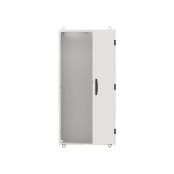 Wandschrank, Baureihe TwinLine, Leerschrank, Montageart: Aufputz, teilversenkt, für den Innenbereich, mit Tür, Schutzklasse II (schutzisoliert), Schutzart IP55, geltende Normen: DIN EN 61439-1, VDE 0660-600-1, DIN EN 61439-2, VDE 0660-600-2, DIN EN 61439-3, VDE 0660-600-3, IK-Code 08, pulverbeschichtet, in RAL 7035, Gehäuse aus Stahlblech, einflüglige Tür, Tür aus Stahlblech, mit Standardverschluss Doppelbart 3 mm, Türöffnungswinkel 180 Grad, Türanschlag rechts oder links, Rückwand aus Stahlblech, Leitungseinführung oben über Flanschöffnung ausgeschnitten, unten über Flanschöffnung vorgeprägt, seitlich über Flanschöffnung vorgeprägt, Abmessungen in mm (H x B x T): 1100 x 550 x 225, Rasteinheit 7 RE, Bauhöhe 3, Feldbreite 2, Platzeinheiten 168, vorbereitet für den Ausbau mit Zähler-, Verteilerfelder, Kombi-Sets, CombiLine-Module auf EDF-/WR-Montagegerüst