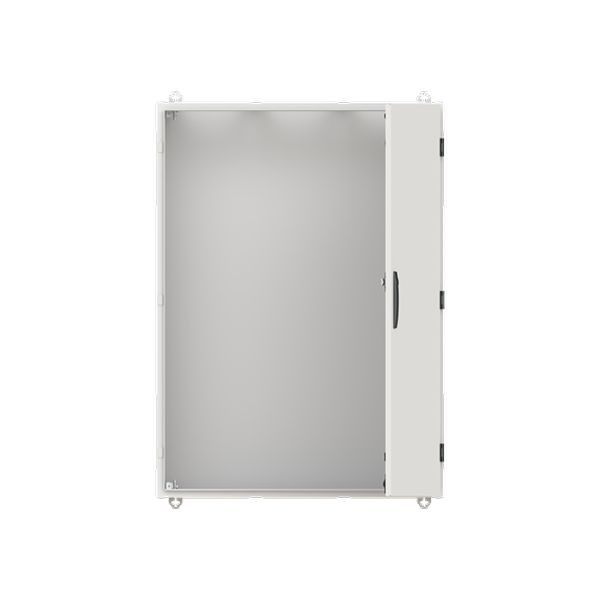Wandschrank, Baureihe TwinLine, Leerschrank, Montageart: Aufputz, teilversenkt, für den Innenbereich, mit Tür, Schutzklasse I (geerdet), Schutzart IP55, geltende Normen: DIN EN 61439-1, VDE 0660-600-1, DIN EN 61439-2, VDE 0660-600-2, DIN EN 61439-3, VDE 0660-600-3, IK-Code 08, pulverbeschichtet, in RAL 7035, Gehäuse aus Stahlblech, einflüglige Tür, Tür aus Stahlblech, mit Standardverschluss Doppelbart 3 mm, Türöffnungswinkel 180 Grad, Türanschlag rechts oder links, Rückwand aus Stahlblech, Leitungseinführung oben über Flanschöffnung ausgeschnitten, unten über Flanschöffnung vorgeprägt, seitlich über Flanschöffnung vorgeprägt, Abmessungen in mm (H x B x T): 1100 x 800 x 225, Rasteinheit 7 RE, Bauhöhe 3, Feldbreite 3, Platzeinheiten 252, vorbereitet für den Ausbau mit Zähler-, Verteilerfelder, Kombi-Sets, CombiLine-Module oder Montageplatten auf EDF-/WR-Montagegerüst