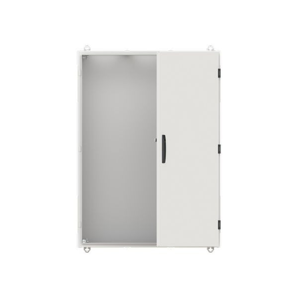 Wandschrank, Baureihe TwinLine, Leerschrank, Montageart: Aufputz, teilversenkt, für den Innenbereich, mit Tür, Schutzklasse II (schutzisoliert), Schutzart IP55, geltende Normen: DIN EN 61439-1, VDE 0660-600-1, DIN EN 61439-2, VDE 0660-600-2, DIN EN 61439-3, VDE 0660-600-3, IK-Code 08, pulverbeschichtet, in RAL 7035, Gehäuse aus Stahlblech, einflüglige Tür, Tür aus Stahlblech, mit Standardverschluss Doppelbart 3 mm, Türöffnungswinkel 180 Grad, Türanschlag rechts oder links, Rückwand aus Stahlblech, Leitungseinführung oben über Flanschöffnung ausgeschnitten, unten über Flanschöffnung vorgeprägt, seitlich über Flanschöffnung vorgeprägt, Abmessungen in mm (H x B x T): 1100 x 800 x 225, Rasteinheit 7 RE, Bauhöhe 3, Feldbreite 3, Platzeinheiten 252, vorbereitet für den Ausbau mit Zähler-, Verteilerfelder, Kombi-Sets, CombiLine-Module auf EDF-/WR-Montagegerüst