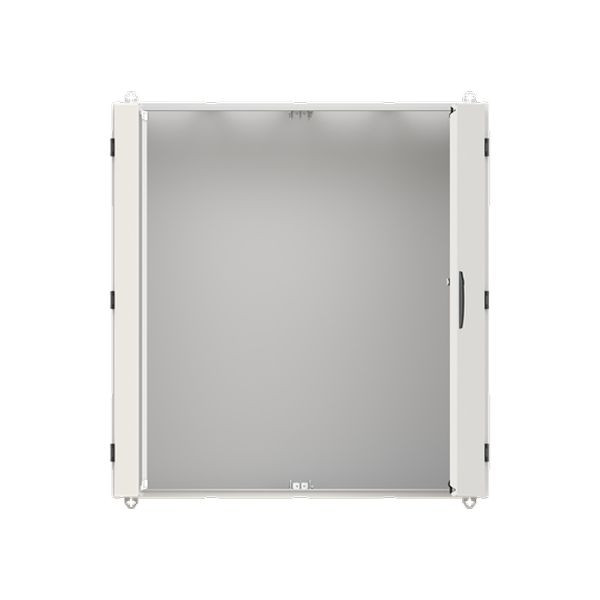 Wandschrank, Baureihe TwinLine, Leerschrank, Montageart: Aufputz, teilversenkt, für den Innenbereich, mit Tür, Schutzklasse I (geerdet), Schutzart IP55, geltende Normen: DIN EN 61439-1, VDE 0660-600-1, DIN EN 61439-2, VDE 0660-600-2, DIN EN 61439-3, VDE 0660-600-3, IK-Code 08, pulverbeschichtet, in RAL 7035, Gehäuse aus Stahlblech, Doppeltür, Tür aus Stahlblech, mit Standardverschluss Doppelbart 3 mm, Türöffnungswinkel 180 Grad, Türanschlag rechts und links, Rückwand aus Stahlblech, Leitungseinführung oben über Flanschöffnung ausgeschnitten, unten über Flanschöffnung vorgeprägt, seitlich über Flanschöffnung vorgeprägt, Abmessungen in mm (H x B x T): 1100 x 1050 x 350, Rasteinheit 7 RE, Bauhöhe 3, Feldbreite 4, Platzeinheiten 336, vorbereitet für den Ausbau mit Zähler-, Verteilerfelder, Kombi-Sets, CombiLine-Module oder Montageplatten auf EDF-/WR-Montagegerüst