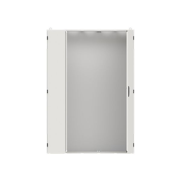 Standschrank, Baureihe TwinLine, Leerschrank, Montageart: Aufputz, teilversenkt, für den Innenbereich, mit Tür, Schutzklasse II (schutzisoliert), Schutzart IP55, geltende Normen: DIN EN 61439-1, VDE 0660-600-1, DIN EN 61439-2, VDE 0660-600-2, DIN EN 61439-3, VDE 0660-600-3, IK-Code 08, pulverbeschichtet, in RAL 7035, Gehäuse aus Stahlblech, Doppeltür, Tür aus Stahlblech, mit Standardverschluss Doppelbart 3 mm, Türöffnungswinkel 180 Grad, Türanschlag rechts und links, Rückwand aus Stahlblech, Leitungseinführung oben über Flanschöffnung ausgeschnitten, unten über Flanschöffnung vorgeprägt, seitlich über Flanschöffnung vorgeprägt, Abmessungen in mm (H x B x T): 1850 x 1300 x 350, Rasteinheit 12 RE, Bauhöhe 8, Feldbreite 5, Platzeinheiten 720, vorbereitet für den Ausbau mit Zähler-, Verteilerfelder, Kombi-Sets, CombiLine-Module auf EDF-/WR-Montagegerüst
