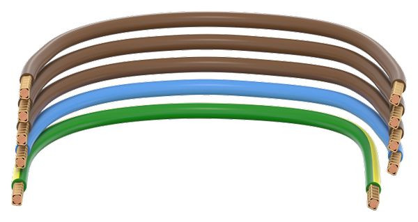 Zählerabgangsltg. 5-polig, 10qmm, 3x braun / 1x blau / 1x grün-gelb, von Zähler unten zu AAR.