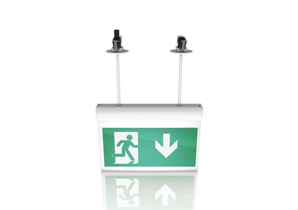 SylSafe Exit-Mod EX S EMC MT MS ist ein hängendes Notausgangsschild. Wird mit einem ISO7010-konformen Beschriftungssatz geliefert. Pfeile links, rechts, oben, unten und ein leeres Blatt für einseitige Versionen. EC-Beschriftungssatz ist als Zubehör erhältlich. Erkennungsweite 26 m. Weiße Gehäusefarbe. Gepflegte Version für Zentralbatteriesysteme. 1,8 W, IK03, IP20. Leistungsfaktor 0,49. Elektrische Konstruktion der Klasse II.