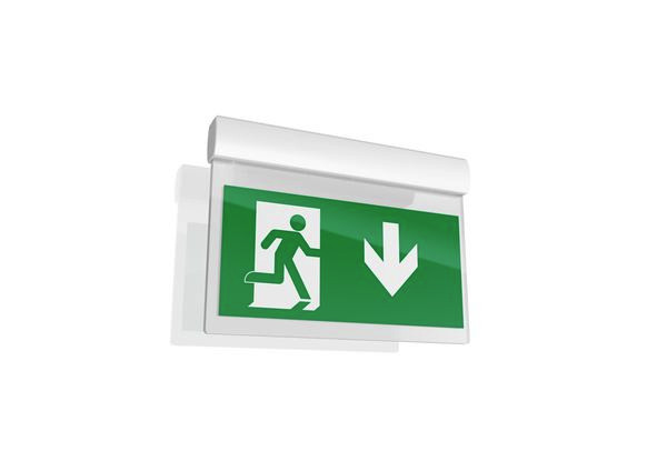 SylSafe Exit-Mod EX 9 EM3 MT MS ist ein wandmontiertes Notausgangsschild. Wird mit einem ISO7010-konformen Legendenpaket geliefert. Pfeile links, rechts, oben, unten und ein leeres Blatt für einseitige Versionen. EC-Beschriftungssatz ist als Zubehör erhältlich. Erkennungsweite 26 m. Weiße Gehäusefarbe. Aufrechterhaltener 3-Stunden-Notbetrieb mit NiMH-Akku. Wiederaufladezeit 24 Stunden. 4,9 W, IK03, IP20. Leistungsfaktor 0,49. Elektrische Konstruktion der Klasse II.