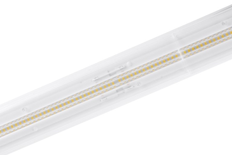 RTS LED linear luminaire for industrial and commercial applications. 1500 mm length with narrow optics provide homogenous light distribution for aisles and focus areas. Steel housing, White color, -20 … +30 °C operating temperature range, 4000 K, CRI 80, 3 SDMC. 50 W power consumption, 8000 lm luminous flux, 160 lm/W efficacy, 1500 mm x 70.2 mm x 78.6 mm (L x W x H) dimensions, IP20, IK03, 220-240 V 50/60 Hz, Class I. Lifespan L70:B50 120,000 hours.