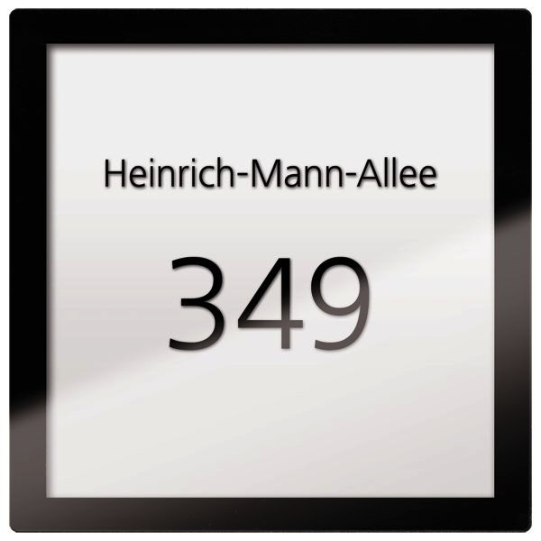 Infomodul für Außenstationen in individualisierter Bestückung, Unterputzmontage, hinter 3 mm Frontblenden integrierbar, frontbündiger Einbau für Frontblenden von 1,5 mm bis 2,5 mm durch beiliegende Distanzplatten, sichtbare Frontabmessung 82 mm x 82 mm (Ausschnitt), Modulrasterabstand 120 mm, Weiße LED Hintergrundbeleuchtung, Aufnahme Namensschildträger, individuell vom Kunden beschriftbar für Anzeige Straßenname und Hausnummer, Maße: H 105 x B 105 x T 19, Material: Kunststoff, Infofeld Acrylglas