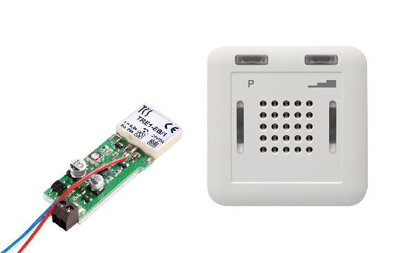 Gerätekombination aus Einbau-Sender (TRE1-EB), Steckdosen-Funkgong und Einbau-Ruf-Relais zur optisch-akustische Signalisierung eines Türrüfs, Bestehend aus:, 1x Steckdosen-Funkgong RCP24E FFL0005-0000, 1x Einbau-Ruf-Relais TRE1-EB, 1x Einbau-Sender RTS17E FFL0002-0000, 1x Beipack (Verbindungsklemme, Vorwiderstand), Geeignet für: ISH3030, ISW3030, IVH3222, Produktmerkmale:, Gerätekombination aus Einbau-Sender, Steckdosen-Funkgong und Einbau-Ruf-Relais, optisch-akustische Signalisierung eines Türrufs, 12 Ruftöne, jeweils in 3 Lautstärken, Anzahl anlernbarer Sender: max. 32, Technische Daten:, Steckdosen-Funkgong, Schutzart: IP20, Versorgungssspannung: 230 V AC / 50 Hz, Steckdosen-Funkgong H x B x T mm: 122 x 75 x 38, zulässige Umgebungstemperatur: -20 bis +35 °C, H x B x T: 71,4 x 71,4 x 40 mm, Einbau-Sender, Schutzart: IP20, Versorgungsspannung: 24 V, Einbau-Sender H x B x T mm: 30 x 16 x 7, zulässige Umgebungstemperatur: -5 bis +40 °C, Einbau-Ruf-Relais, TRE1-EB, Schutzart: IP00, Versorgungsspannung: 24 V, Einbau-Ruf-Relais H x B x T mm: 64 x 21 x 18, zulässige Umgebungstemperatur: -5 bis +40 °C