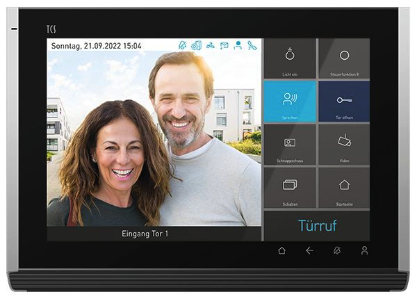 Anzahl akustischer Rufunterscheidungen: 17, Anzahl Parallelrufe: 1, Anzahl wählbarer Ruftöne: 24, automatische Gesprächsabschaltung: ja, automatisches Freisprechen nach Internruf: aktivierbar, Besetztanzeige: ja , Etagenruf möglich: Ja, Etagentüröffnerfunktion: aktivierbar, Import individueller Ruftöne: möglich, Internruf: konfigurierbar, Lautstärke Gespräch: im OSD-Menü Rufton- und Lautsprecherausgabe jeweils in 8 Stufen vom Benutzer einstellbar, Lautstärke Mikrofonempfindlichkeit: einstellbar, Lichtschalten: über OSD-Menü, Mithörsperre: ja, Parallelruf: konfigurierbar, Rufannahme: an Sprechentaste, Rufanzeige: optisch und/oder akustisch, Ruftöne: über OSD-Menü einstellbar, Ruftonabschaltung: im OSD-Menü, Rufumleitung: konfigurierbar, Sprachauswahl: Deutsch / Englisch, Sprachübertragung: Voll-Duplex, Türöffnerautomatik: über OSD-Menü, Bildaufschaltung/Kameraauswahl: OSD-Menü, Bildspeicherung je Türruf: Ja, Helligkeit: OSD-Menü in 20 Stufen, Einstellung Helligkeit: OSD-Menü in 20 Stufen, Einstellung Kontrast: OSD-Menü in 20 Stufen, Farbsättigung: OSD-Menü in 20 Stufen, PTZ-Steuerung: über OSD-Menü, Benutzer-Interface:, Anwender-Apps: E-Mail, Kalender und Internetbrowser, Anzeige Datum: einstellbar, Anzeige Wetter: einstellbar, Anzeige Zeit: einstellbar, Bedienung Eingabe: Direktwahltasten und OSD-Menü, Funktionen im OSD-Menü: (De-)Aktivierung der Touch-Funktion, Programmierung, Werkseinstellung laden, Kurzmitteilungsempfang: möglich, Menüsteuerung: OSD-Menü, OSD Menü: Ja, Startbildschirm: individuell konfigurierbar, Versenden von Kurzmitteilungen: über OSD-Menü, Installateur-Interface:, Anschluss Etagentaster: Ja, Anschluss Ethernet: via Kabel, Betriebsanzeige: OSD-Menü, Inbetriebnahme und Konfiguration: manuell, Passwortschutz: Ja, Werkseinstellung laden: über OSD-Menü, Steuern:, Anzahl konfigurierbarer Steuerfunktionen: 20, Hausautomation: zentral EIN / zentral AUS, IP: Anschlussart: Schraubklemmen TCS:BUS und LAN, Email Versand: Organizer im OSD-Menü, Ethernet: LAN und WLAN, Webinterface: Webbrowser, Werkseinstellung: DHCP, Kamera Eigenschaften:, empfohlene Montagehöhe (m): 1,60, Display-Eigenschaften:, Displayauflösung: 1280 x 800, Displaygröße (cm): 25,6, Displaygröße (Zoll): 10,1, Displaytyp: Touchscreen, color, Anzahl Drähte: 6, Information Verdrahtung: 6-Draht notwendig, 3-Draht Eingangsstrom Ipmax (mA): 240, 3-Draht Ruhe Eingangsstrom Ia (mA): 0,32, 3-Draht Ruhe Eingangsstrom IP (mA): 78, Eingangsspannung (V): 26 +-8%, Höhe Gehäuse (mm): 198, Breite Gehäuse (mm): 280, Tiefe Gehäuse (mm): 22, Material Gehäuse: Aluminium, Oberflächenbehandlung Gehäuse: gepulvert, Farbe Gehäuse: silber, min. zulässige Umgebungstemperatur (°C): 0, max. zulässige Umgebungstemperatur (°C): 40, Schutzart Gehäuse: IP30