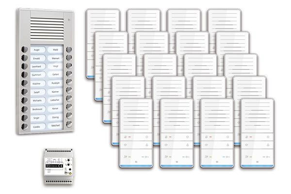 | Kurzbeschreibung | audio:pack AP für 20 Wohneinheiten, mit Außenstation PES 20 Klingeltasten + 20x Freisprecher ISW6031 + Steuergerät BVS20 |