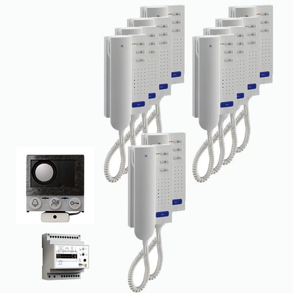 Vorkonfiguriertes Paket für 10 Wohneinheiten für den TCS:BUS bestehend aus: 1x Einbau-Türlautsprecher (Serie TCU) 16WE, Artikelnummer: ASI12000-0000, vorprogrammiert, 10x Türtelefon 4Tasten WS, Artikelnummer: ISH3030-0140, 1x Vers. + Steuerg. BVS20 1Strang 4TE, Artikelnummer: BVS20-SG, Das Paket ist ab Werk vorkonfiguriert und bedingt erweiterbar. Die Funktionen der Innen- und Außenstationen können mit TCS-Serviceprodukten bedingt verändert werden, Die Komponenten unterstützen einen stand-alone-Betrieb