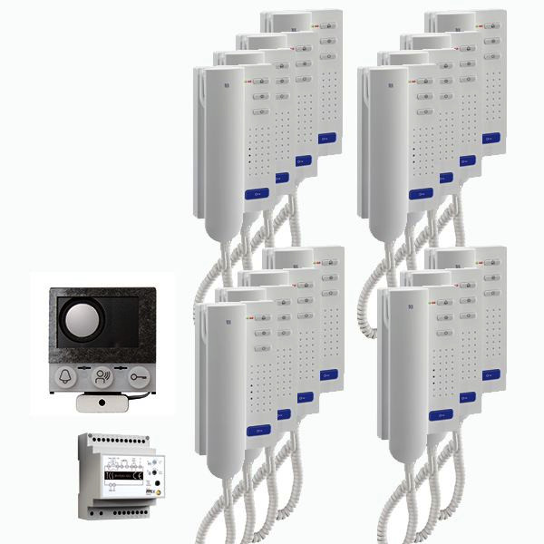 Vorkonfiguriertes Paket für 15 Wohneinheiten für den TCS:BUS bestehend aus: 1x Einbau-Türlautsprecher (Serie TCU) 16WE, Artikelnummer: ASI12000-0000, vorprogrammiert, 15x Türtelefon 4Tasten WS, Artikelnummer: ISH3030-0140, 1x Vers. + Steuerg. BVS20 1Strang 4TE, Artikelnummer: BVS20-SG, Das Paket ist ab Werk vorkonfiguriert und bedingt erweiterbar. Die Funktionen der Innen- und Außenstationen können mit TCS-Serviceprodukten bedingt verändert werden, Die Komponenten unterstützen einen stand-alone-Betrieb