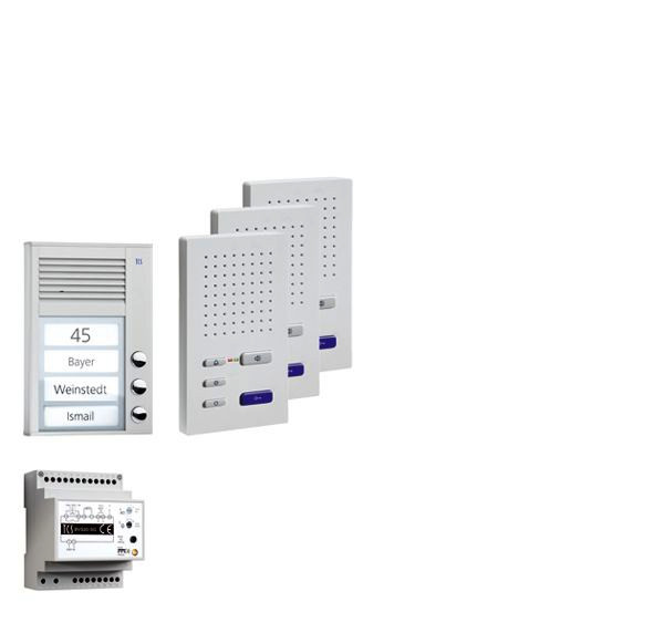 | Kurzbeschreibung | audio:pack AP für 3 Wohneinheiten, mit Außenstation PAK 3 Klingeltasten + 3 x Freisprecher ISW3030 + Steuergerät BVS20 |