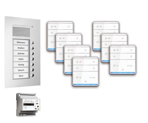 | Kurzbeschreibung | audio:pack UP für 7 Wohneinheiten, mit Außenstation PUK 7 Klingeltasten + 7x Freisprecher ISW6010 + Steuergerät BVS20 |