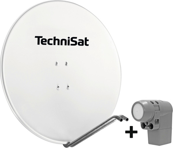 85 cm Spiegel aus erstklassigem Aluminium (beidseitig pulverbeschichtet), 1 bis 4 Teilnehmer, 1 Orbitposition (z. B. Astra 19,2° Ost), optimal für Wand- und Dachmontage, LNB mit Wetterschutzgehäuse