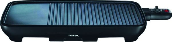 antihaftbeschichtete Alugussplatte mit integriertem Heizelement: 2/3 klassische Grillfläche (mit Fettabflussrillen) und 1/3 Teppan-Yaki-Grillfläche (glatt), Fettauffangschale, abnehmbares Anschlusskabel, regelbarer Thermostat mit Kontrolleuchte, Thermokunststoffgriffe, Indoor & Outdoor Zertifizierung