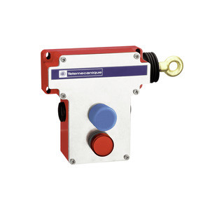 Seilzug-Notschalter für Seillängen bis max. 70m, Betätigung von rechts, Schaltausgänge 2ÖS, Leuchtmelder.