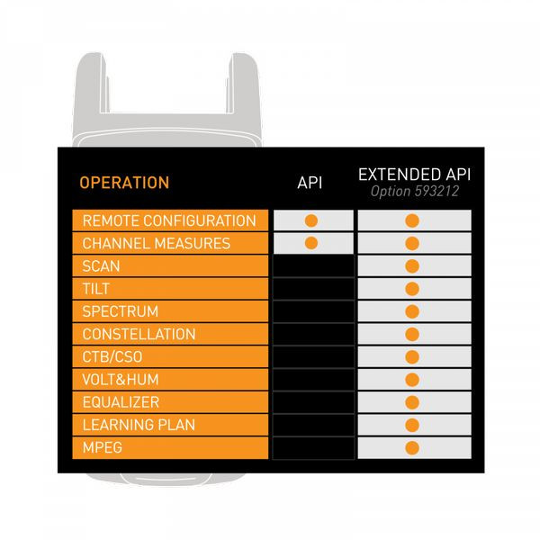 Diese Option, die auf dem H30+ & H30D+ installiert werden kann, ermöglicht die Fernkonfiguration* der Geräte nach den Bedürfnissen des Benutzers. Unter den Parametern, die mit dieser Funktionalität konfiguriert werden können, sind: Sprache; Netzwerkverbindung (kabelgebunden oder drahtlos); Einheiten (dBuV, dBmV oder dBm); Kanalauswahl (innerhalb eines vorab festgelegten Kanalplans); Kanalfrequenz Planauswahl (innerhalb der auf dem Gerät gespeicherten Pläne); Kanalerkennung (automatisch oder manuell); Tuning (nach Kanal oder nach Frequenz); Qualitästprofile; Bandbreite; Ton-Lautstärke; Spektrum; Spannweite; Frequenzbezugspegel (automatisch oder manuell); Scantyp; Eingangsfrequenzen; Eingang Referenzpegel (automatisch oder manuell); Neigungsfunktionen; Automatisch aussetzen; Automatische Abschaltung. (*) Um diese Option nutzen zu können, muss das Gerät mit dem Netzwerk verbunden sein.