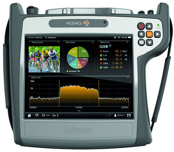 Multifunktions-Messgerät für SAT, BK, Terrestrik, Optik, DAB+ und IP, 8” Touch Screen, TFT (1.024x768) Vollfarbdisplay, 4h Akkulaufzeit, 2 kg Gewicht, Li-Ion Akku (7,2VDC, 9000mAh) austauschbar, Echtzeit Spektrumanalyzer, Konstellationsdiagramm, Wasserfalldiagramm, Bildschirm invididuell konfigurierbar - bis zu 6 Funktionen auf einen Blick, automatische Satellitenerkennung, präzise Messungen (wie z.B. Pegel, MER, BER C/N), DiSEqC und SCRI und SCRII Steuerung (EN 50494 & EN50607), Messwertinterpretation nach dem Ampelprinzip grün-gelb-rot: Top - „geht so“- schlecht, Bildwiedergabe von digitalen TV -Programmen, CI-Schnittstelle, Netzwerkfähig - Fernsteuerbar, Darstellung 4K UHD, Abmessungen: 250x210x60 mm (H x B x T)