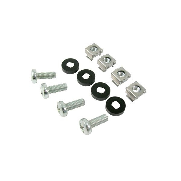 Das Schrauben-Set für 19"-Schränke besteht aus 50x Schraube + Unterlegsscheibe + Schraubenmutter.
