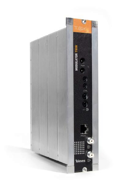 TWIN-Kanalzug zur Umsetzung von zwei AV-Signalen in zwei frei wählbare PAL-Ausgangskanäle, Nachbarkanaltauglich, Konfiguration von Audio - und Videoparametern die die Anpassung der Signale für jeden Einsatzbereich ermöglichen, 9 nationale Kanaltabellen, Integrierter Testbildgenerator