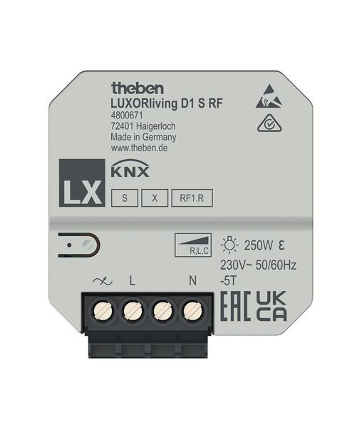 LUXORliving 1-fach Funk-Dimmaktor UP für Smart Home LUXORliving SMARTstart, Sichere Kommunikation über KNX-RF mit Unterstützung von KNX Data Secure, Optimierter Dimmausgang für dimmbare Energiesparlampen, LED, Glüh- und Halogenlampen sowie dimmbare Trafos, Einfache Adaption an verschiedene Leuchtmittel durch automatische Lasterkennung, Einstellbare Dimmkurve für präzises und flackerfreies Dimmen, 2 Binäreingänge für potentialfreie Kontakte wie Taster, Schalter, Temperatursensor (I2), Die Binäreingänge sind ab Werk dem Dimmausgang zugewiesen (Funktionstest vor der Programmierung), Integrierte Temperaturüberwachung für erhöhte Betriebssicherheit z.B. bei Überlast