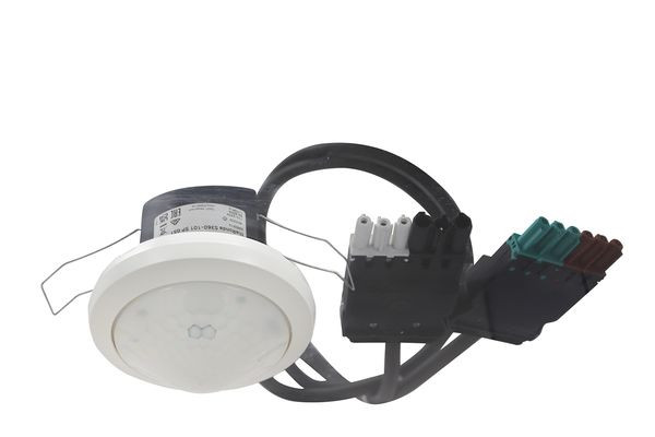 Präsenzmelder (PIR), mit Kabel und Wieland GST18 Steckern, Erfassungsbereich 8 m, 1 x Licht, 1 Tastereingang, 1 Secondary-Eingang, Kabellänge 0, 9 m, automatische helligkeitsabhängige Steuerung für Beleuchtung, Mischlichtmessung, Ausschaltverzögerung einstellbar, Empfindlichkeit einstellbar, Werte voreingestellt (fernparametrierbar)