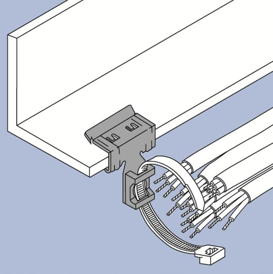 E-Klips® Federstahlbefestigungssysteme aus verzinktem Stahl. Diese bieten stabile, flexible und einfach zu installierende Befestitungslösungen für eine breite Palette von Anwendungen. Ohne Bohrunng oder die Verwendung zusätzlicher Schrauben. AH153-M Trägerklammern mit Montagesockel für gebündelte Leitungen, ohne Kabelbinder.