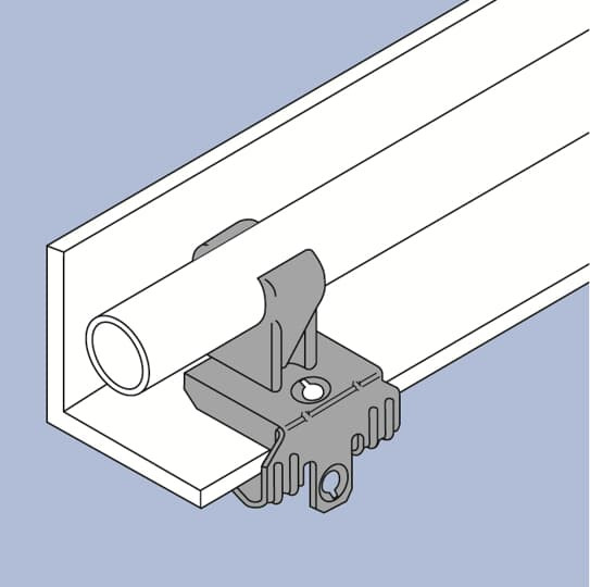 E-Klips® Federstahlbefestigungssysteme aus verzinktem Stahl. Diese bieten stabile, flexible und einfach zu installierende Befestitungslösungen für eine breite Palette von Anwendungen. Ohne Bohrunng oder die Verwendung zusätzlicher Schrauben. EH1420-P22 Trägerklammern zur Leitungsschutzbefestigung.