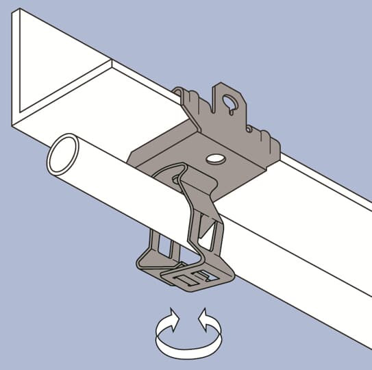 | Kurzbeschreibung | E-Klips Trägerklammer waagrecht an 3-8mm + Rohrklammer 19-26mm, verschliessbar |