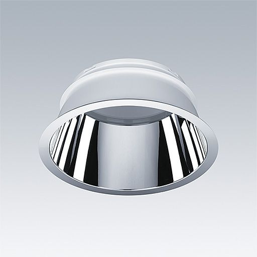 Ein Blendschutzeinsatz für Cetus Downlight in Größe L, für besseren Blendschutz bei der Anwendung in Büros (UGR19 gemäß EN12464). Material: Polycarbonat (PC), hochreflexiv. Ausführung: verspiegelt. Gewicht: 0,1 kg