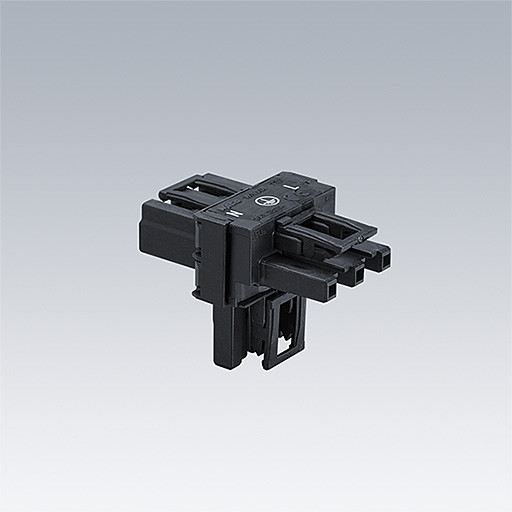 Ein 3-poliger Wago T-Anschluss zur seitlichen Durchgangsverdrahtung, Typ: WINSTA midi Cod. A, schwarz. Gewicht: 0,04 kg