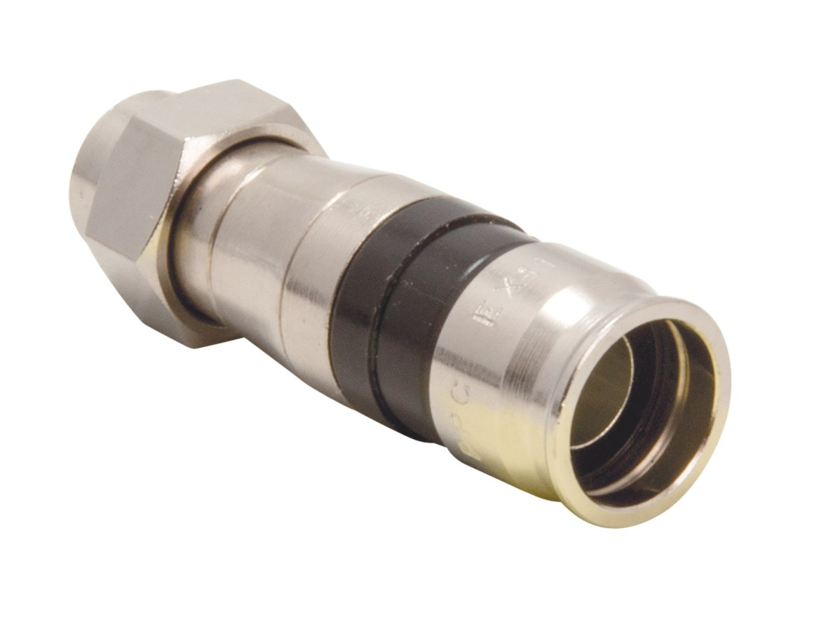 EX 11, F-Kompressions-Steckverbinder für Koaxialkabel., für wetterfeste Koaxanschlüsse, IP 67, einfache Montage mit dem passenden Kompressionswerkzeug, Frequenzbereich 0 - 2400 MHz, Schirmungsmaß > 90 dB, extreme Zugfestigkeit, farbliche Kennzeichnung der Hülsen für einfache Identifikation der Stecker.