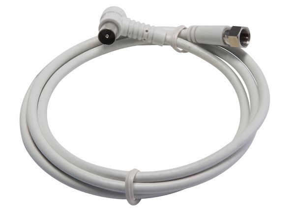 Spezial-Anschlusskabel F-Stecker Gerade/IEC-Stecker Winkel, getestet und geprüft und von qualifizierten TRIAX Ingenieuren, Kabel und Stecker mit hoher Qualität, hohe Schirmung >85 dB, erfüllt Klasse A, PVC-UV beständig.