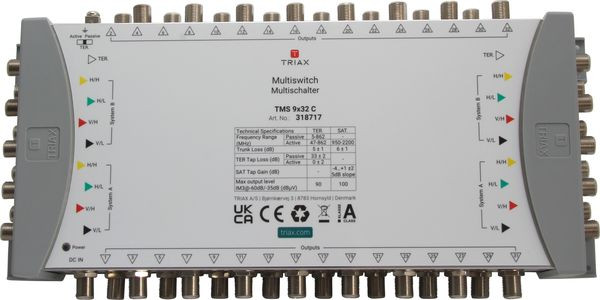 | Kurzbeschreibung | Kaskaden-Multischalter 8 SAT + 1 terr. Eingang, 32-fach, ext. Netzteil, terr. aktiv/passiv |