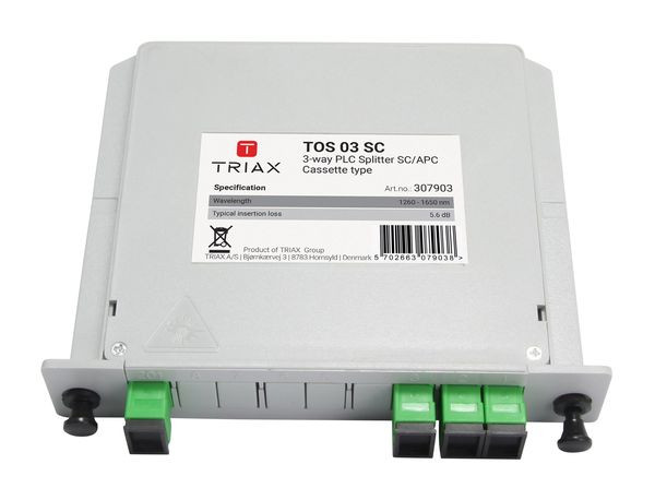 | Kurzbeschreibung | 3-fach optischer Verteiler, SC/APC Anschlüsse - |