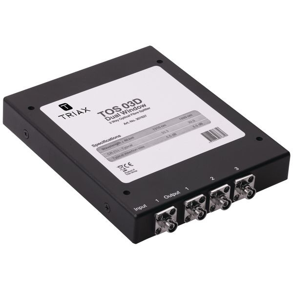 TOS 03D, optischer Verteiler 3-fach mit Kabel. Für Singlemode-Systeme. Hervorragende mechanische Stabilität. Geringe Eingangsdämpfung. Vorkonfektioniert mit 1 m langem Pigtail und FC/PC-Steckern. Wellenlänge 1310 oder 1550 nm.