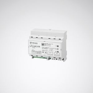 Dali Steuergerät mit integriertem RJ45 LAN Modul. Für den Anschluss, die Inbetriebnahme und Bedienung von LiveLink-Sensoreinheiten, LiveLink DALI-Tasterkopplern und DALI-Leuchten. Das Steuergerät kann bis zu 64 DALI-Teilnehmer verwalten. Vordefinierte Raumkonfigurationen (Use Cases) mit allen planungsrelevanten Daten ermöglichen eine einfache und schnelle Inbetriebnahme. Die Adressierung der Leuchten und LiveLink Systemkomponenten erfolgt mit Hilfe einer graphischen Benutzeroberfläche (iOS/Android App) für Tablet-PCs. Vollautomatische (automatisch Ein/Aus) oder halbautomatische (nur automatisch Aus) Anwesenheitserfassung, Tasterfunktionen frei programmierbar. Das Steuergerät mit integriertem Netzgerät 230 V ist für die Installation auf eine DIN-Hutschiene (TS35) ausgelegt. Die Inbetriebnahme mit der LiveLink Install App erfolgt über WLAN-Verbindung (WPA2 Verschlüsselung) mit einem Tablet-PC. Mit DALI-Schnittstelle zum Anschluss von Leuchten, LiveLink Sensoren und Tasterkopplern. RJ45 Buchse zur Integration in das bauseits vorhandene LAN mit WLAN-Router. Bedienung optional mit Tablet-PC, Smartphone oder Installations-Taster. Zur Inbetriebnahme und Bedienung mit Tablet-PC oder Smartphone ist die Verbindung des Steuergeräts zu einem WLAN-fähiger Router erforderlich (mind. nach IEEE 802.11b).