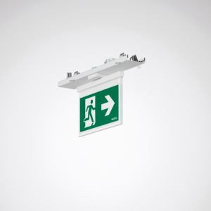 Geräteträger für E-Line 7651 Lichtbandsystem mit LED-Rettungszeichen-Scheibenleuchte zur Fluchtwegkennzeichnung. Die Scheibenleuchte ist mit einem separat zu bestellenden Piktogramm zur Darstellung der Fluchtrichtung auszustatten. Die Geräteträger mit Notlichtbaustein sind mit Tragprofilen mit Durchgangsverdrahtung (Typ 7LV + 7LV) zu kombinieren. Geeignet zur Anwendung in HACCP, IFS und/oder BRC Global Standard Food zertifizierten Unternehmen. Leuchtenlichtstrom und Lichtfarbe fest eingestellt. Mit einem LED-Modul 12 x 0,1 W für eine Erkennungsreichweite von bis zu 20 m. maximale Leuchten-Lichtausbeute lm/W. Lichtfarbe tageslichtweiß, ähnlichste Farbtemperatur (CCT) 5600 K, allgemeiner Farbwiedergabeindex (CRI) Ra > 70. Farborttoleranz (initial MacAdam) = 3 SDCM. Die Lichtquelle ist entsprechend der Ökodesign-Anforderungen (VO (EU) 2019/2020) austauschbar. Flimmern: Pst LM = 1,0 bei Volllast. Stroboskop-Effekt: SVM = 0,4 bei Volllast. Gehäuse Scheibenleuchte aus weißem UV-beständigem Polycarbonat. Oberfläche weiß beschichtet (ähnlich RAL 9016). Länge des Geräteträgers 368 mm. . Gewicht: 0,9 kg. Selbsttätige elektrische Verbindung durch Steckkontakte mit Phasenwahl. Die Phasenwahl erfolgt werkzeuglos. Mit elektronischem Betriebsgerät, schaltbar. Das Betriebsgerät ist entsprechend der Ökodesign-Anforderungen (VO (EU) 2019/2020) austauschbar. Zur Verwendung in Kombination mit einer Zentralbatterieanlage Typ INOTEC JOKER (230V / 50 Hz). Das Produkt erfüllt die grundlegenden Anforderungen der anwendbaren EU-Richtlinien und des Produktsicherheitsgesetzes und trägt die CE-Kennzeichnung. Leuchte 10 Jahre, Ersatzteile (LED-Modul, Betriebsgerät, optisches System) 15 Jahre nach Rechnungsdatum unter Vorbehalt vertretbarer Änderungen, die dem Fortschritt dienen, verfügbar.