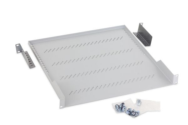 | Kurzbeschreibung | 19" Fachboden gelocht, für Belastung 40 kg, 1HE/450mm , RAL7035 |