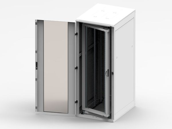 Alle 800 mm breiten Triton-Verteiler können mit einem Schwenkrahmen für die Montage von Komponenten ausgerüstet werden, die von der Rückseite zugänglich sein müssen.