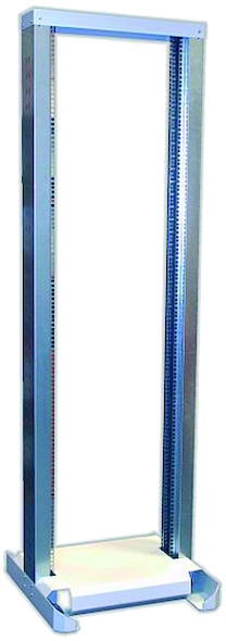 Das Bodenteil des Gestellrahmens bildet ein kompakter Schweißrahmen aus lackiertem Stahlblech. An diesem sind die verzinkten 19“-Profilschienen befestigt, die im oberen Teil des Gestellrahmens durch eine Querstrebe in der derselben Farbe wie das Bodenteil versteift werden. Im Beipack des Gestellrahmens befinden sich Stellfüße. An ihrer Stelle können auch Rollen zur einfacheren Bewegung des Gestellrahmens montiert werden. Alle einteiligen Gestellrahmen haben denselben Grundriss des Bodenteils (600 x 616mm), sie unterscheiden sich lediglich in ihrer Höhe. Maximal Belastung 150 KG