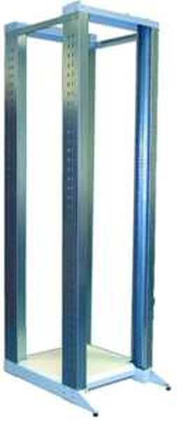 Das Bodenteil der zweiteiligen Gestellrahmen bildet ein geschweißter Rahmen aus lackiertem Stahlblech. An diesem sind die verzinkten vertikalen 19“-Profilschienen befestigt, die im oberen Teil des Rahmens durch eine Strebe in derselben Farbe wie das Bodenteil versteift werden. Im Beipack des Gestellrahmens befinden sich Stellfüße. An ihrer Stelle können auch Rollen zur einfacheren Bewegung des Gestellrahmens montiert werden. Maximal Belastung 400 KG