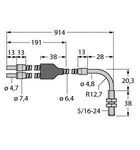 Glas-Lichtleiter, Gabelleiter, Betriebsart: Reflexionslichttaster / -schranke, Edelstahlummantelung, flexibel, Betriebstemperatur Lichtleitermantel: -140…+249 °C, Fühler-Endhülse: Messing, abgewinkelt (90°), Gewinde 5/16”-24, Betriebstemperatur Lichtleiterspitze: -140...+249 °C, Lichtleiter-Bündeldurchmesser: 3.2 mm, Gesamtlänge des Lichtleiters: ± 914 mm