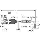 Glas-Lichtleiter, Gabelleiter, Betriebsart: Reflexionslichttaster / -schranke, Edelstahlummantelung, flexibel, Betriebstemperatur Lichtleitermantel: -140…+249 °C, Fühler-Endhülse: Messing, Gewinde 5/16”-24, abgewinkelte Glatthülse (90°), Betriebstemperatur Lichtleiterspitze: -140...+249 °C, Lichtleiter-Bündeldurchmesser: 3.2 mm, Gesamtlänge des Lichtleiters: ± 914 mm