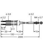 Glas-Lichtleiter, Gabelleiter, Betriebsart: Reflexionslichttaster / -schranke, Edelstahlummantelung, flexibel, Betriebstemperatur Lichtleitermantel: -140…+249 °C, Fühler-Endhülse: Miniatur, Gewinde M4 x 0,7, hochtemperaturfest bis 315° C, Lichtleiter-Bündeldurchmesser: 1.6 mm, Gesamtlänge des Lichtleiters: ± 2.012 mm, Terminiert zum Einatz mit Lichtleiter-Sensoren für Kunsttofflichtleiter
